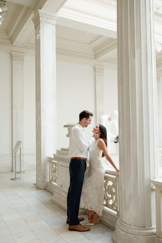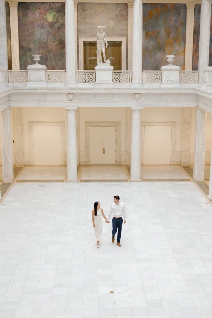 A fan favorite for engagement sessions, the interior of the Carnegie Museum of Art offers a sophisticated, editorial setting with beautiful light, grand staircases, and thoughtfully curated spaces. This location is ideal for couples who want something artistic and fashion-forward. Shooting inside typically requires purchasing museum tickets for everyone involved, including the photographer, and after 3pm tickets are often half price. Planning around school field trips and busy weekend hours will help ensure a relaxed experience.