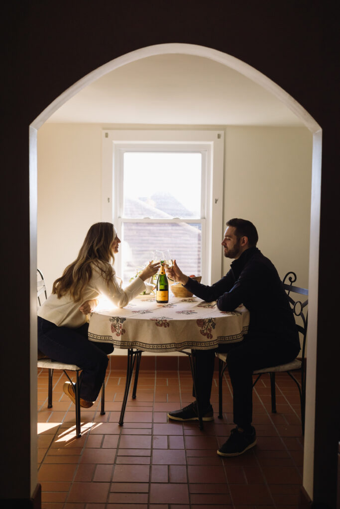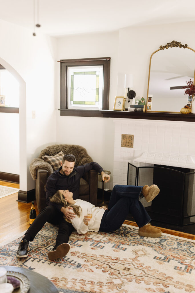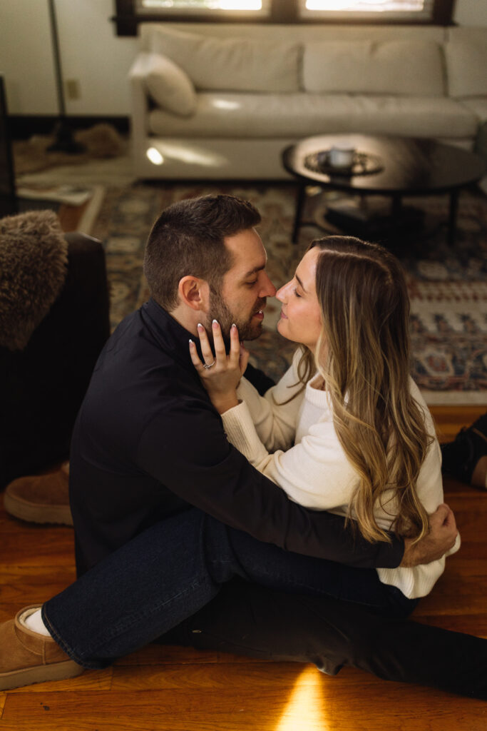 An in-home engagement session is intimate, personal, and meaningful. These sessions focus on the everyday moments that make your relationship yours, whether that’s playing a board game, cooking dinner together, sharing a bottle of wine, or simply relaxing in the space you call home. Natural window light and thoughtfully chosen indoor lighting create a soft, cozy atmosphere where you are almost guaranteed to feel confident in. You’ll have that feeling of being “right at home.”