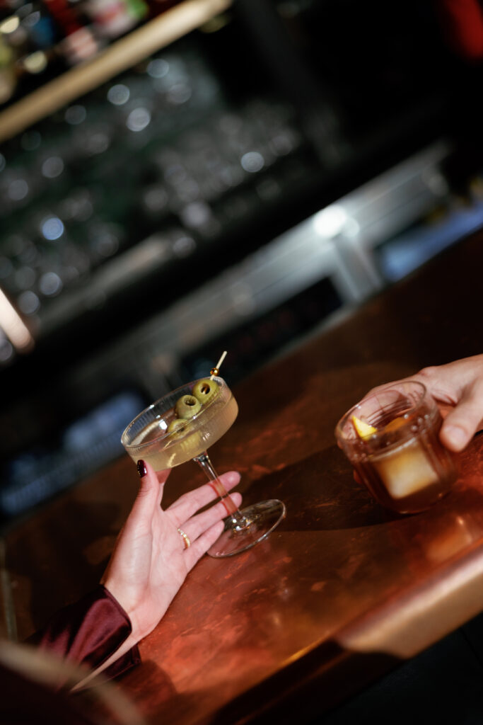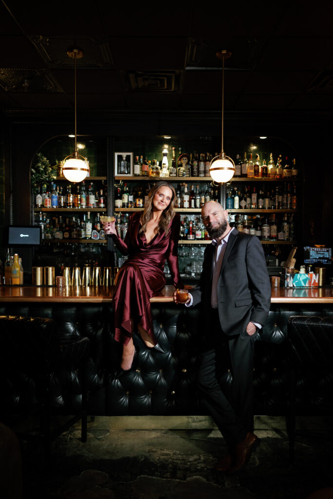Spirit & Tales inside The Oaklander Hotel is a great choice if you want your engagement session to feel elevated but still relaxed. The space has an intimate atmosphere that photographs beautifully, especially during the day before they open. It’s perfect for a nice cocktail before heading right outside for some fun street-style shots around Oakland, steps away from the Cathedral of Learning.