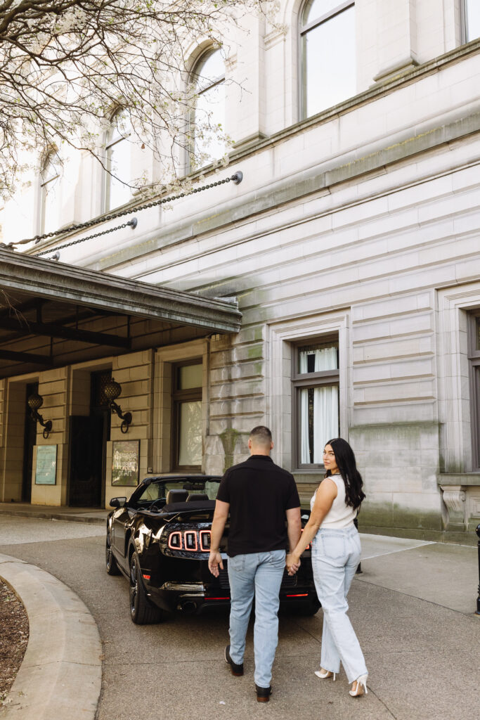 The exterior of the Carnegie Museum of Art features strong architectural lines, neutral stonework, and open walkways that photograph beautifully in any season. This is a great option for couples who want a polished look without indoor restrictions. It pairs well with other Oakland locations and allows for more flexibility in timing and movement.